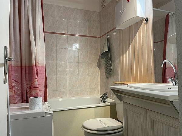 Studio 2 personnes de 22m² situé en rez de chaussée avec terrasse. Kitchenette équipée :plaques électriques, frigo, lave-vaisselle, lave-linge; Séjour avec télévision, une banquette clic-clac 2 personnes.