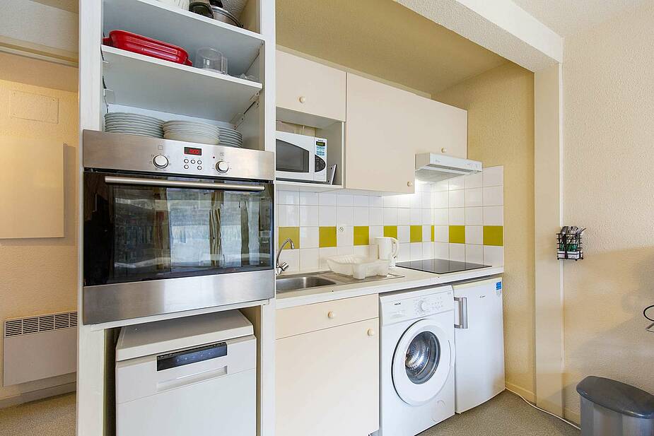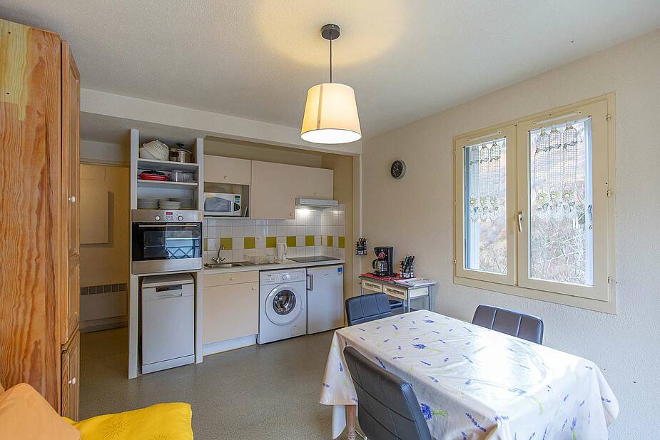 Il se compose d'un séjour avec une cuisine entièrement équipée (micro-ondes, four, lave-vaisselle, plaque de cuisson 4 feux, lave-linge, etc.). Ainsi qu'une chambre dotée d'un lit (140x190) et dans l'entrée un lit superposés (2x90x190).