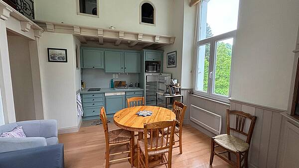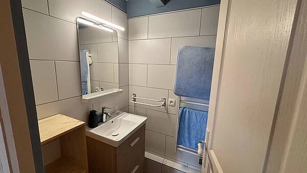 Il se compose d'un séjour avec une cuisine entièrement équipée (micro-ondes combiné, lave-vaisselle, plaque de cuisson vitrocéramique 2 feux, etc.). Ainsi qu'une chambre dotée d'un lit (140x190), une salle d'eau rénovée.