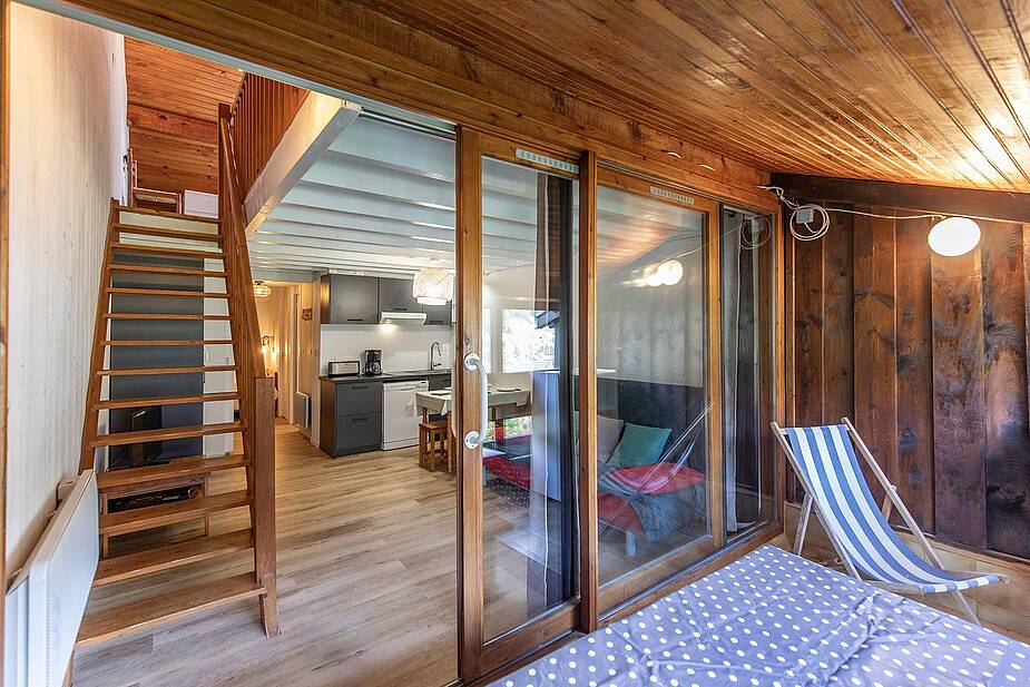 Après vous être stationné sur le parking privé de la résidence vous accéderez tout d'abord à une vaste entrée qui dispose d'un placard de rangement et d'un lit en 80. L'espace est fermée par une porte et se transforme donc en coin nuit.