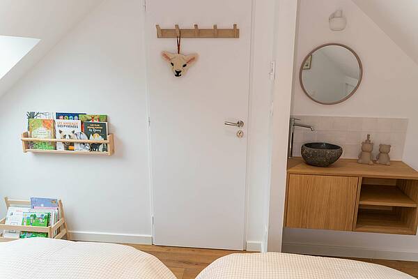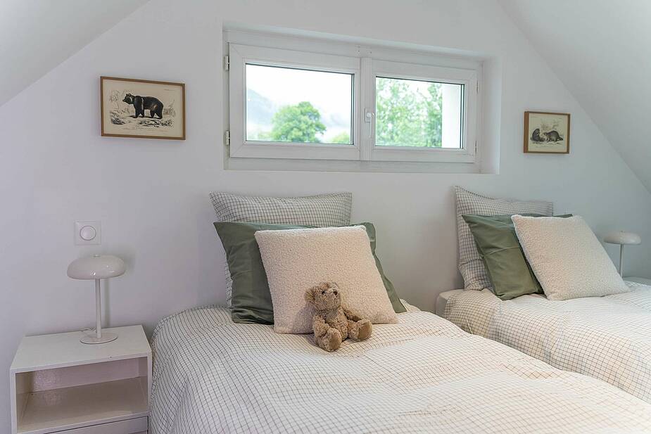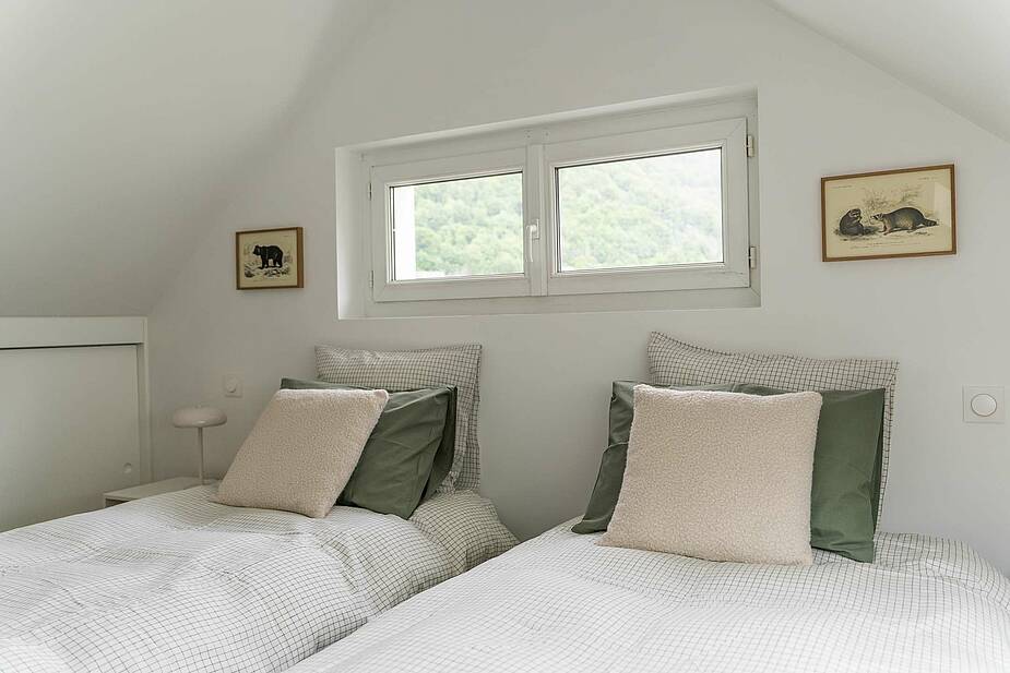 1 chambre avec deux lit en 90x190 idéale pour les enfants, possibilité de rapprocher les lits pour faire un lit double en 180x190.