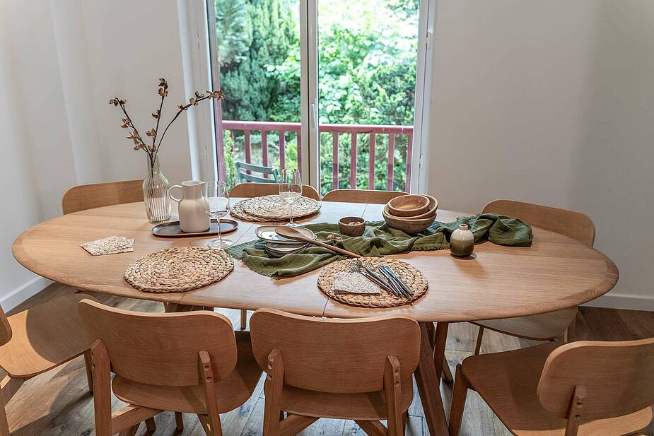 Cuisine moderne et entièrement équipée de tout le matériel nécessaire à la réalisation de vos plats préférés, vous trouverez également la vaisselle adaptée aux plus petits.