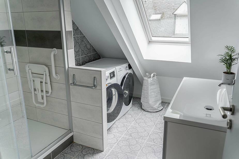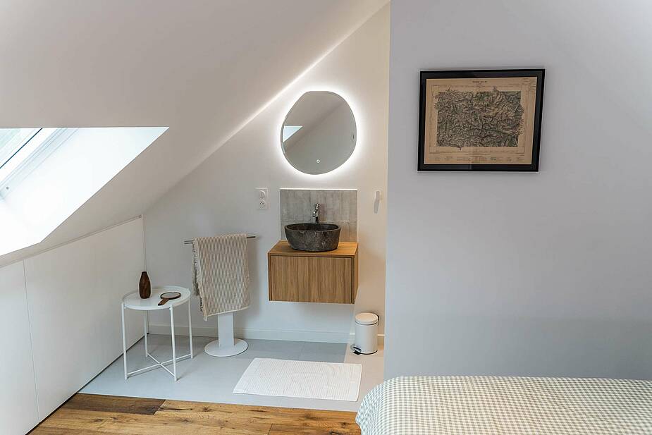 2 salles d'eau, dont une attenante à une chambre de l'étage. 2 toilettes séparés ( rez de chaussée et étage ).