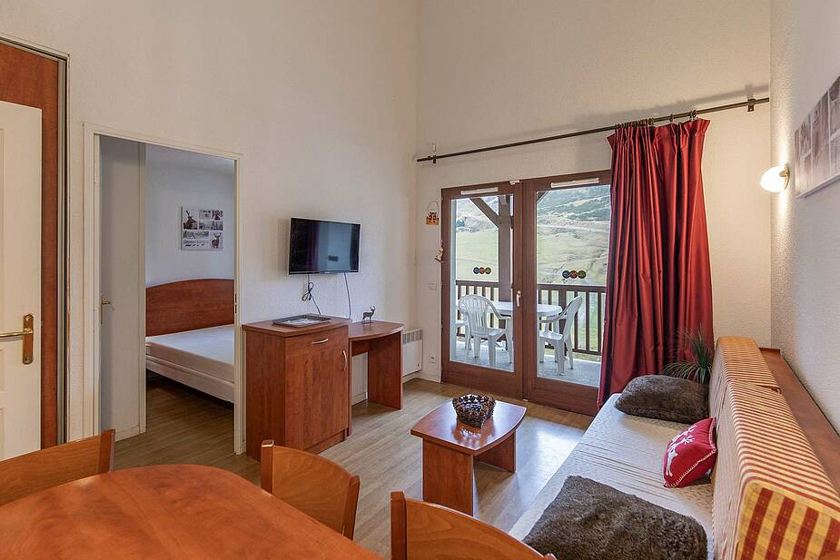 Duplex 7 couchages situé au 2ème étage sans ascenseur, surface de 48 m² avec terrasse, exposition sud. En RDC, Séjour équipé d’une télévision, d’un canapé lit en 160, une chambre avec 1 lit en 160, salle de bains et toilettes séparées. A l'étage, en mezzanine un lit en 90, une chambre avec 2 lits en 90, salle d'eau avec toilettes. Coin cuisine dans séjour avec plaques vitro céramiques, micro-ondes multifonctions, cafetière à filtre, cafetière Dolce Gusto, bouilloire, lave vaisselle et appareil à raclette. Appartement non fumeur. Sol en lino. Casier à ski en RDC. Parking couvert n°62( hauteur 1.95m).