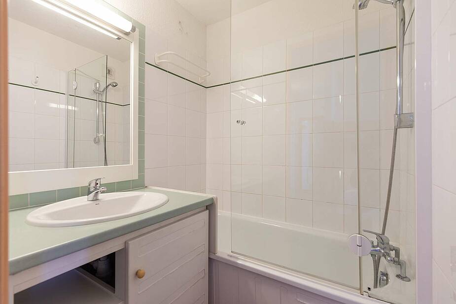 Salle de bain et toilettes séparées. Moquette au sol. Appartement non fumeur. Casier à skis. Emplacement de parking couvert sous l’immeuble n°2K au niveau 2 (haut max 1m80).