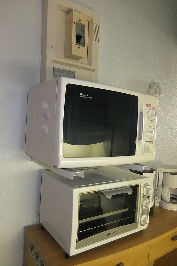 Kitchenette ouverte dans l’entrée, avec 2 plaques électriques, four micro-ondes, mini four électrique, frigo 110 litres, cafetière à filtre, grille pain. Salle de bain comprenant : baignoire, lavabo et toilettes. Casier à ski en face du studio. Studio non fumeur.