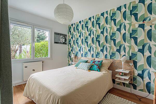 Au rez de chaussée, la partie nuit comprend 2 chambres avec lit en 140 ainsi que des rangements et une salle de bain.