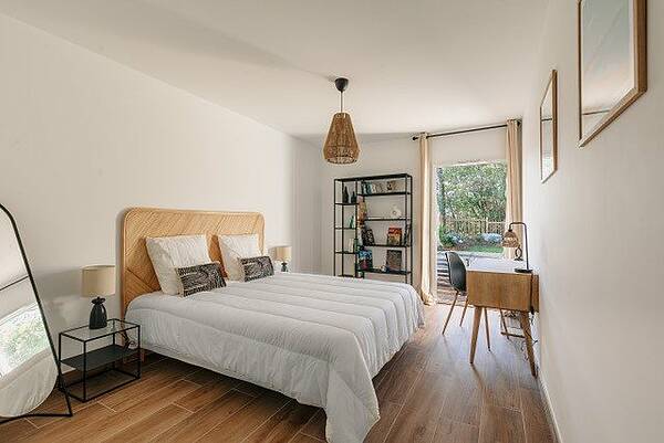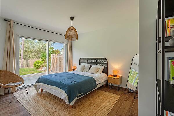 Le coin nuit offre également 3 chambres dont 2 avec un grand lit et accès direct sur la terrasse, et la 3éme comprenant deux petits lits superposés et un lit en 90.