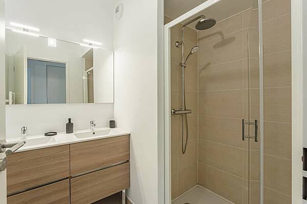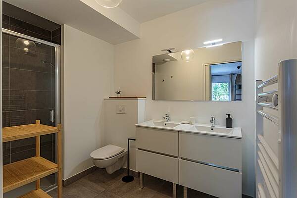 Une salle d'eau avec double vasque et WC complète ce logement.