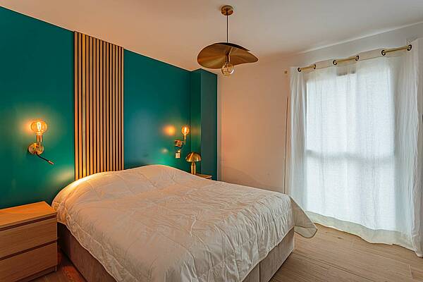 Le coin nuit offre également 3 chambres avec des lits doubles en 160 de la marque tempur (possibilité de les séparer) et deux salles d'eau.