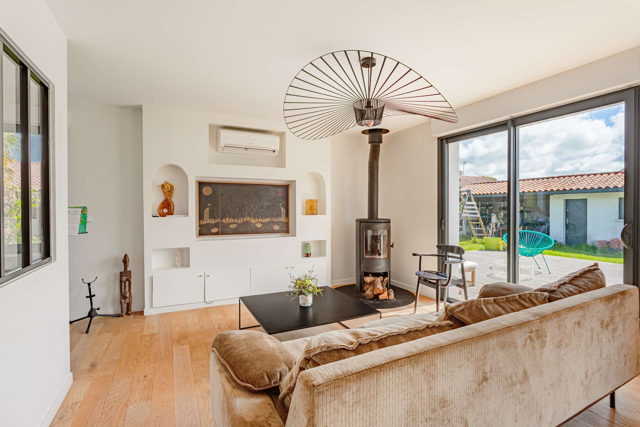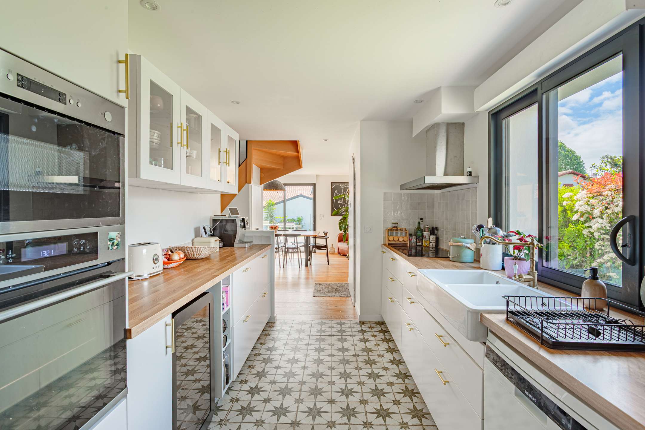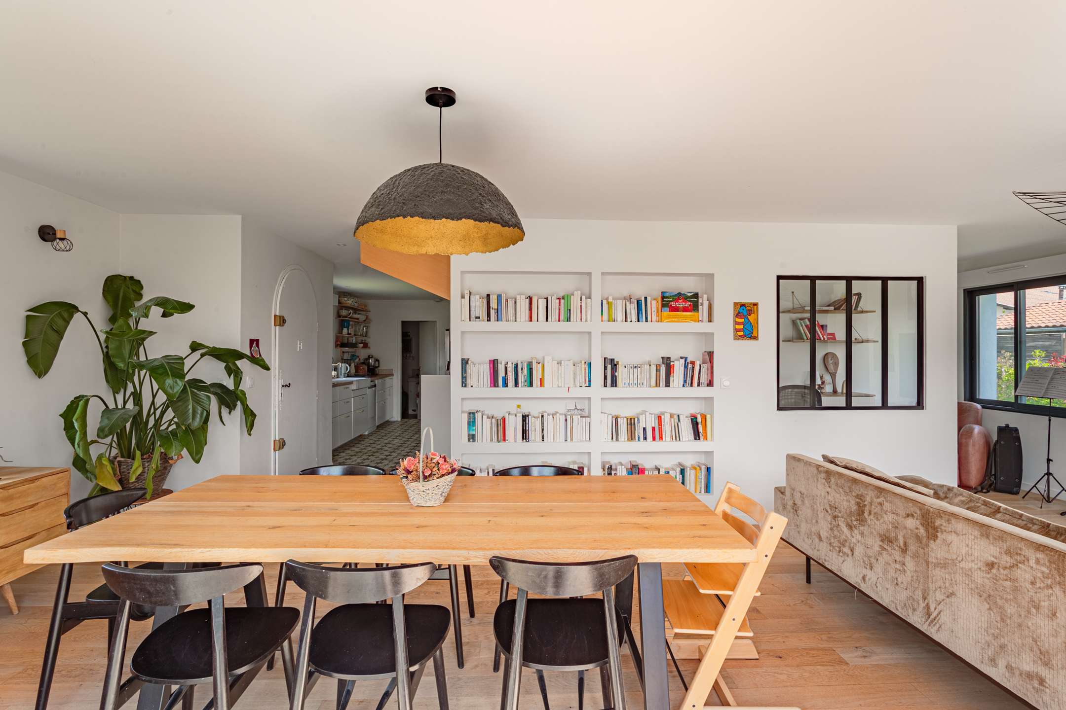 La maison, aux beaux volumes, se compose au rez-de-chaussée d’un vaste espace de vie avec salon, salle à manger et cuisine ouverte entièrement équipée, donnant directement sur une agréable terrasse et un grand jardin, parfait pour profiter des beaux jours.