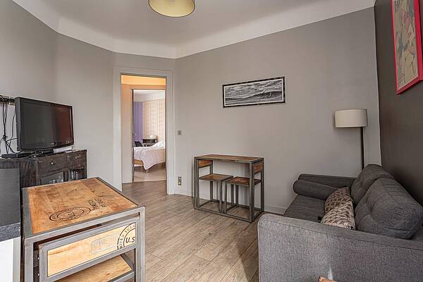 Ce bien est composé d'un coin salon/salle à manger et d'une cuisine ouverte entièrement équipée.