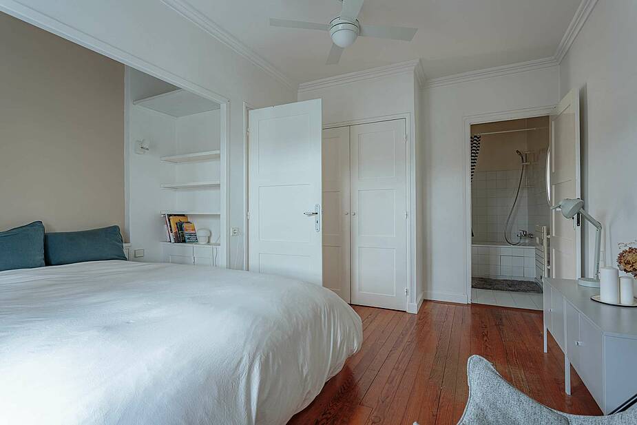 La partie nuit offre une première chambre avec un lit en 160 et sa salle de bain et accès à la loggia , une seconde chambre équipée d'un lit en 160.