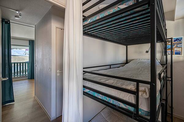 Le coin nuit est composé de 2 lits superposés. Une salle d'eau avec douche, un lavabo, un miroir et WC séparés. Casier à skis.