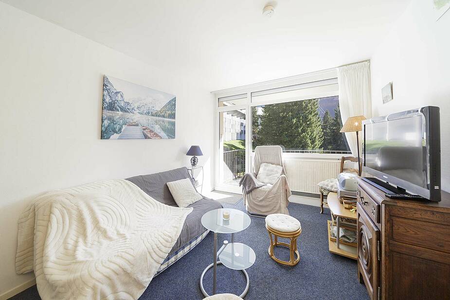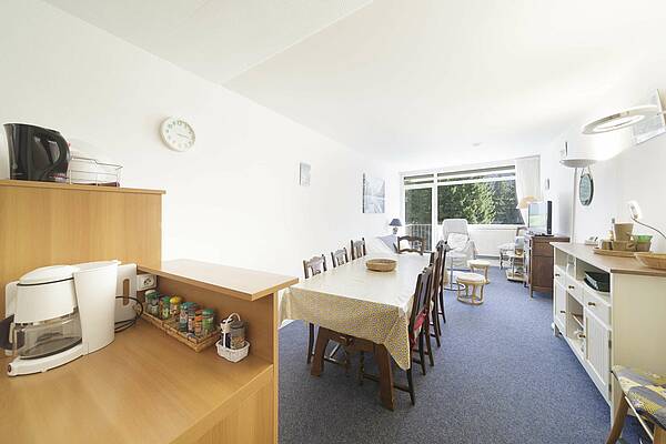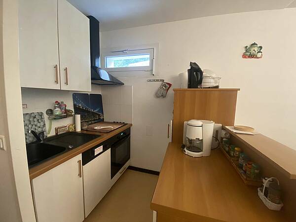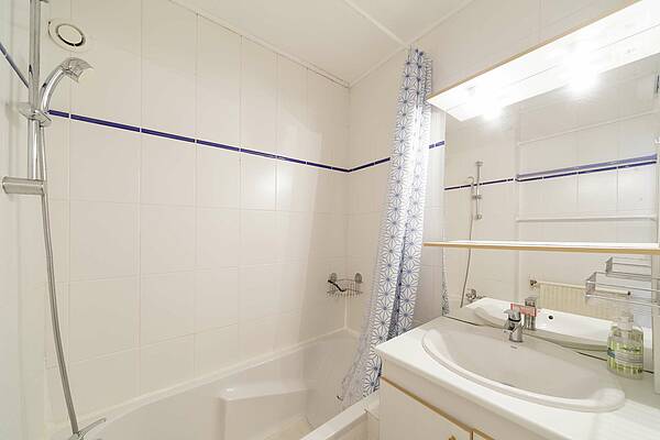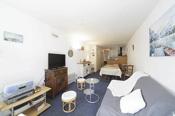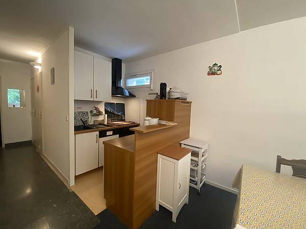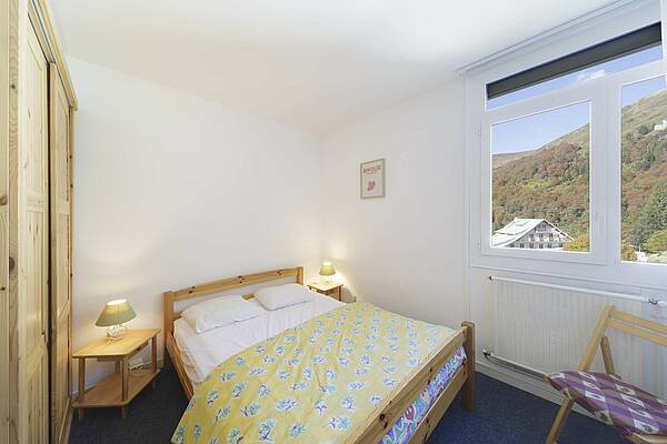 Il se compose d'une chambre avec lit double et placard, ainsi qu’une chambre avec quatre lits simples. La salle de bain et les toilettes sont séparées. Le séjour dispose d’un espace repas, d’un canapé convertible et d’une kitchenette équipée avec réfrigérateur, lave-vaisselle, plaques de cuisson, cafetière filtre, four et micro-ondes.