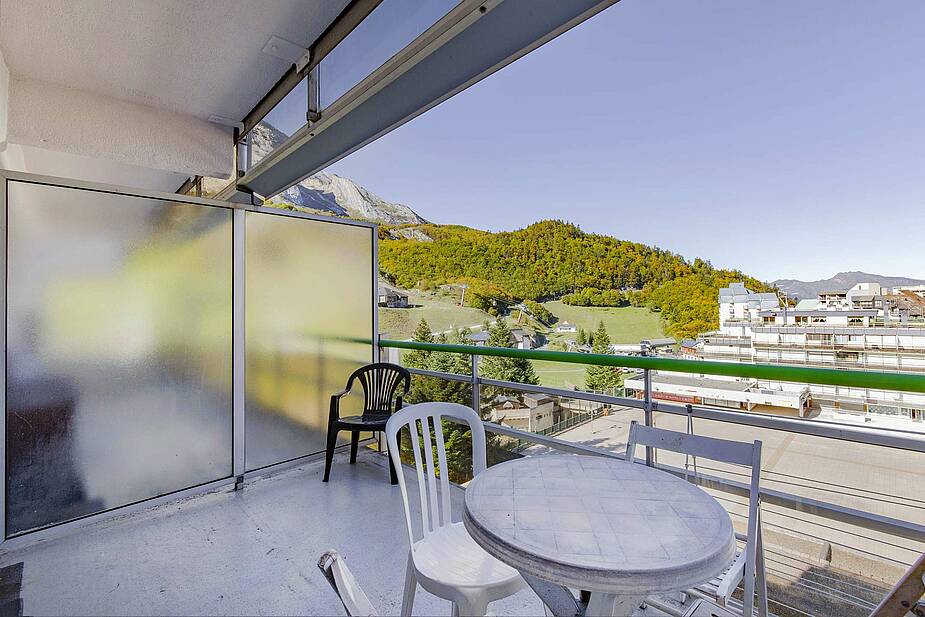Studio situé au 6ème étage avec balcon. Surface de 28 m2.Vue sur les pistes et sur la plateforme du Valentin. Le séjour se compose d'un canapé convertible BZ, une télévision, lit rabattable deux personnes en 140 cm, un coin repas. Aussi la kitchenette est équipée d’un trois plaques induction, un micro ondes, un frigo TOP, une cafetière électrique, un grille pain, un lave vaisselle. A l'entrée il y a un coin nuit avec un canapé lit pour 2 personnes ainsi qu'un lit une place en hauteur. Une Salle d’eau avec une baignoire, un lavabo et un miroir. Les WC sont séparés.