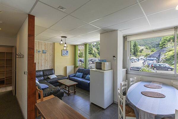 Appartement situé au niveau -2 par des escaliers. Surface de 58 m2 avec vue sur la montagne Anglas.