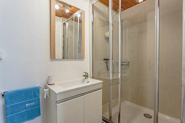 La partie nuit se compose de deux chambre avec deux grand lits et deux salles d'eau séparées.