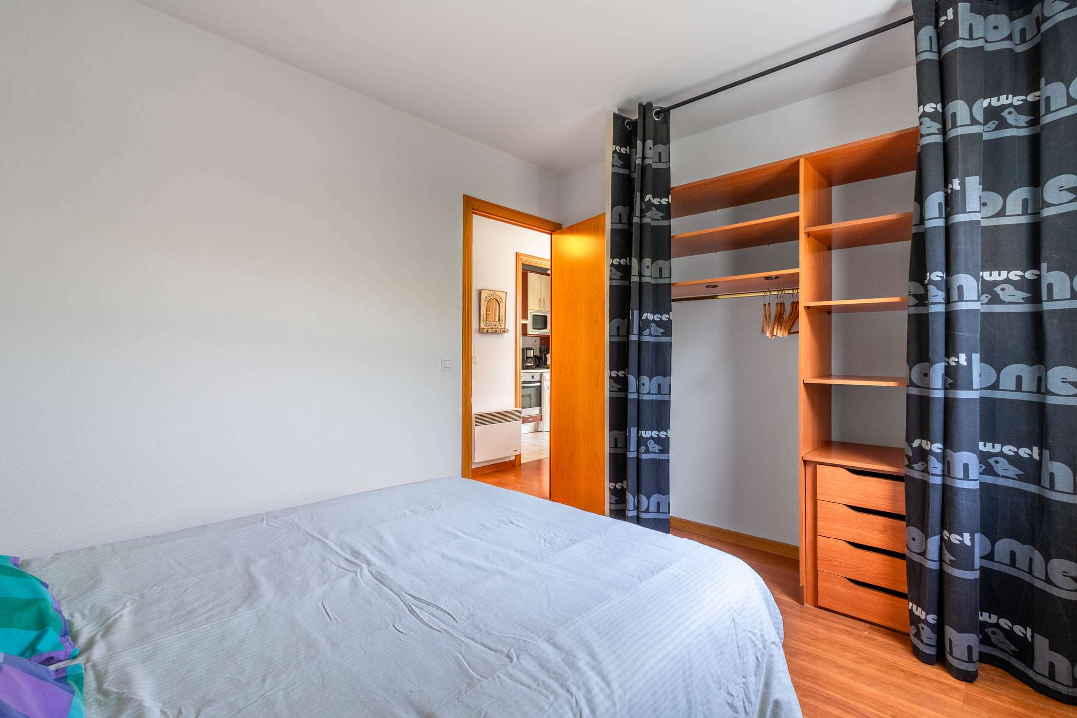 Côté nuit, vous trouverez une chambre confortable avec un lit double (135 cm) et un grand placard aménagé. L’appartement peut accueillir jusqu’à 4 personnes grâce à ses deux couchages doubles.