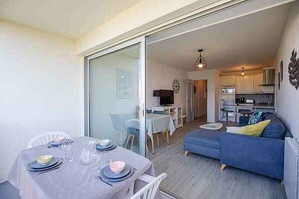 Il se compose d'un salon/salle à manger décoré avec goût disposant d'un canapé convertible et d'une cuisine ouverte équipée le tout ouvrant sur une belle terrasse aménagée.
