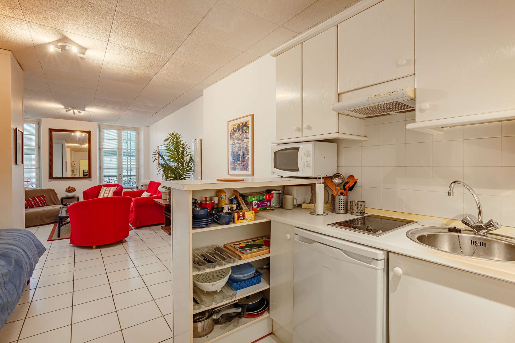 Il se compose d’un salon avec salle à manger ainsi que d’une cuisine ouverte entièrement équipée.