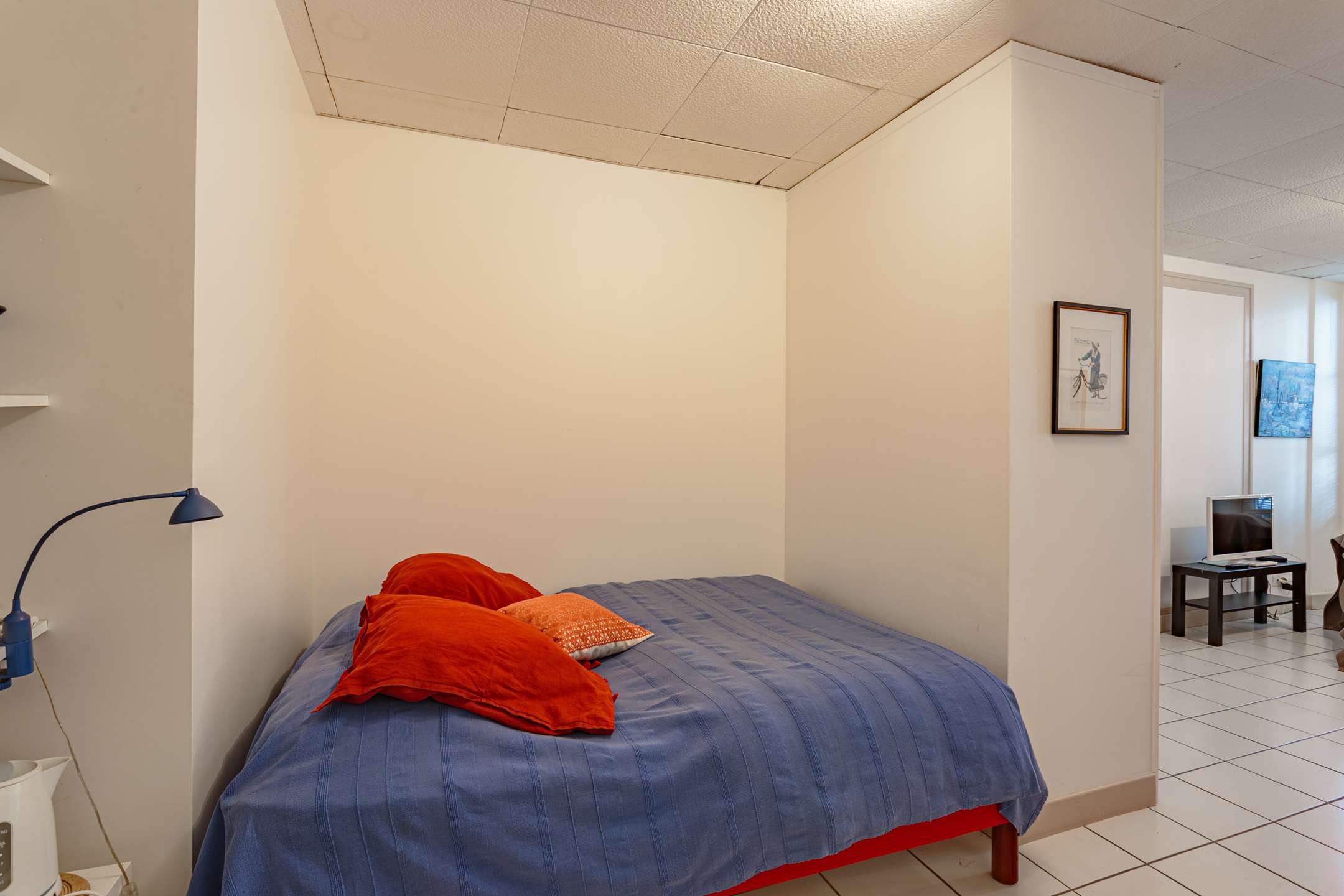 L'espace nuit en alcove offre un lit double ainsi qu'une salle d'eau.